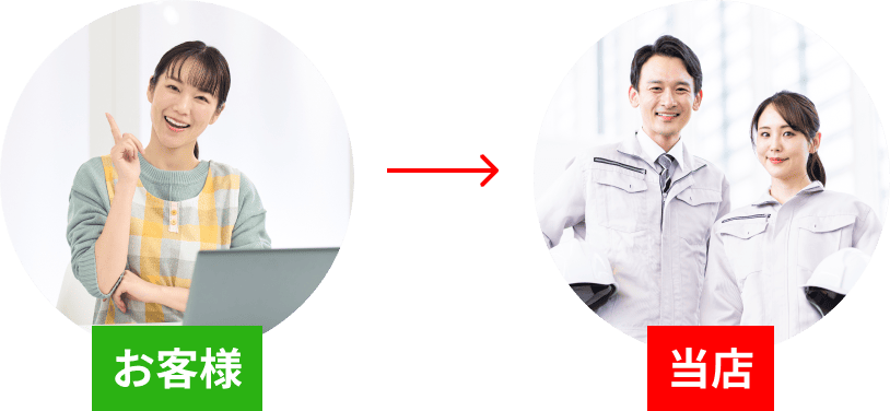 まずはお電話にてお問い合わせください。状況をお聞きできれば、概算のお⾒積りもご提⽰可能です。 ご住所を確認させていただき、ご指定日時にお伺い致します。強引な営業等は一切しておりませんので、ご安心ください。